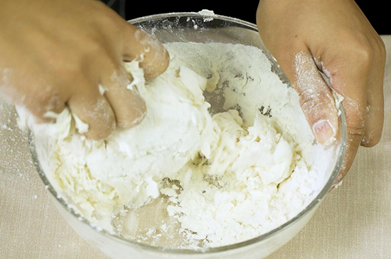 1、中筋面粉和水搅拌成絮状,再不断揉捏成光滑粘手的面团。