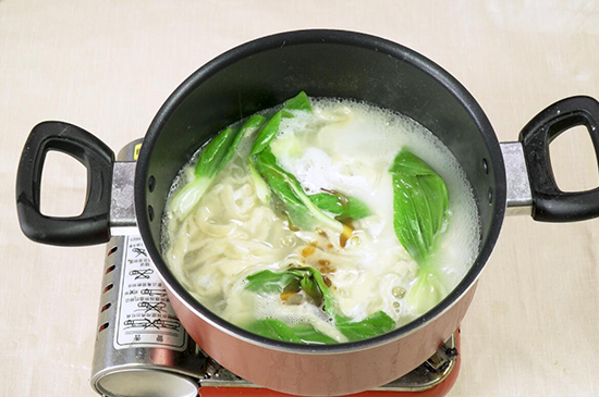 5、起锅烧水,水开后放入手擀面,煮熟后可根据自己的口味加适量青菜、香油,这样一道美味的清汤水煮手擀面就做好了。