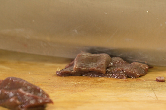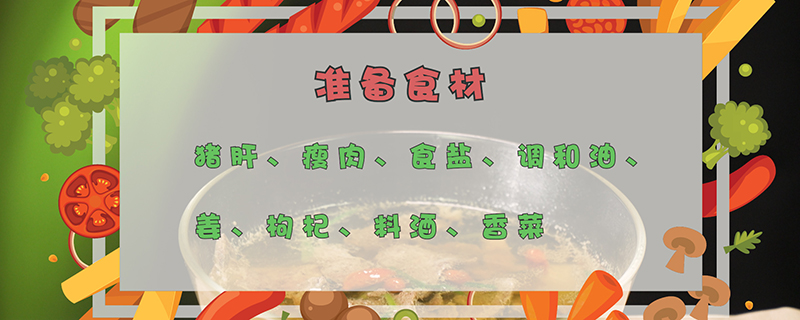 准备食材:猪肝、瘦肉、食盐、调和油、姜、枸杞、料酒、香菜。