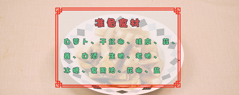 准备食材:白萝卜、干红椒、桂皮、蒜、姜、白酒、生抽、老抽、冰糖、食用油、花椒、盐。