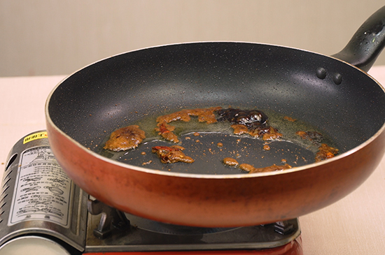 3、放入干红椒、花椒和桂皮炒出香味后关火。