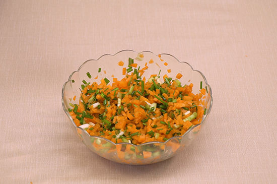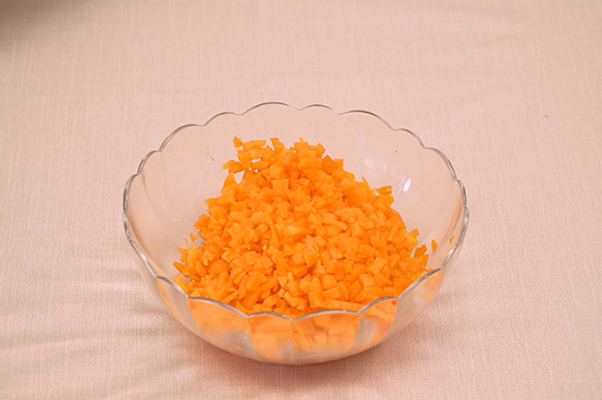 1、胡萝卜洗净后切成末,葱切葱花备用。