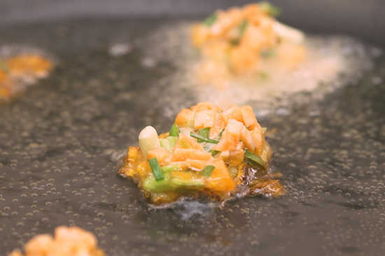 3、起锅烧油,油热后放入揉好的丸子炸成金黄色后。