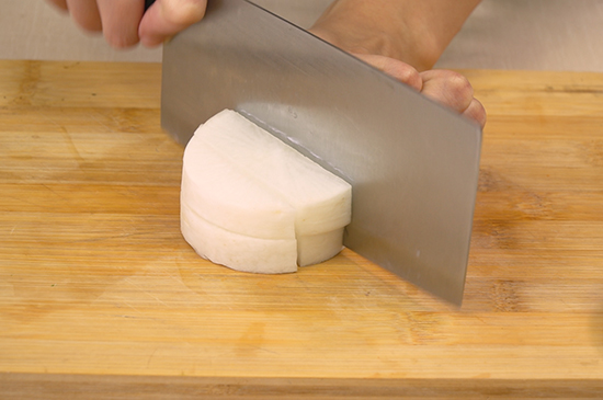 1、牛肉洗净后切小块,白萝卜切成滚刀块,生姜切片,蒜切片,大葱切好备用。