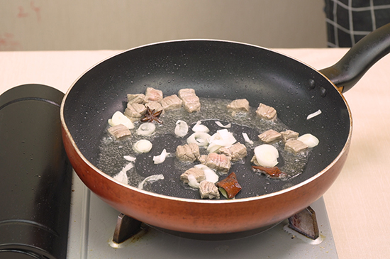 起锅烧油放入焯好水的牛肉翻炒几次后,放入葱、姜、蒜、豆瓣酱、生抽继续翻炒,再加入萝卜翻炒片刻,加足够的水烧开,再转小火熬煮30分钟左右,美味的牛肉炖萝卜就完成了。