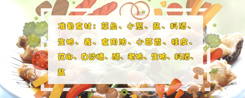 准备食材:草鱼、小葱、盐、料酒、生抽、姜、食用油、小茴香、桂皮、花椒、白砂糖、醋、老抽、生抽、料酒、盐。