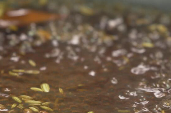 4、起锅烧水,放入小茴香和桂皮煮开后,倒入调好的汁再次煮开,之后放入花椒即可关火盛出备用。