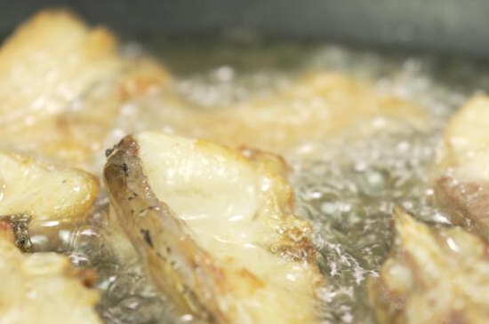 5、起锅烧油,油烧至5成热后放入鱼肉炸至酥透后,捞出沥干油。油烧至7成热时,再放入鱼块炸至黄金焦脆。