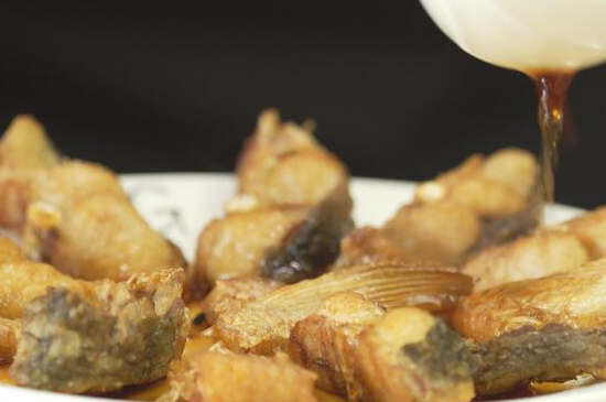 6、最后将炸好的鱼块捞出,淋上酱汁,一份美味苏式爆鱼就做好了。