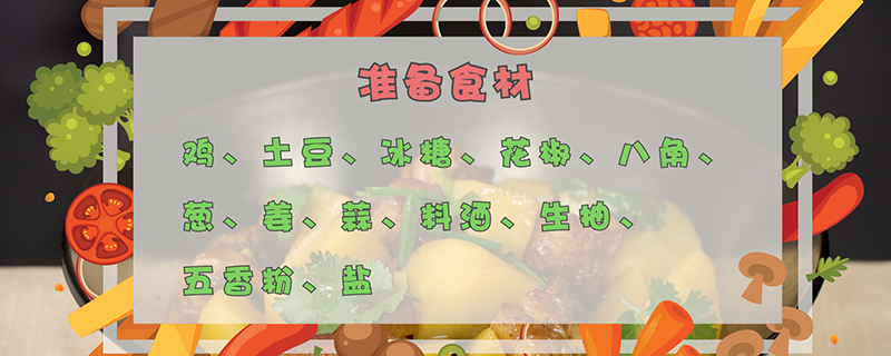准备食材:鸡、土豆、冰糖、花椒、八角、葱、姜、蒜、料酒、生抽、五香粉、盐。