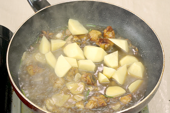 4、转小火炖15分钟左右,同时加入土豆炖至软烂,美味的土豆炖鸡块就做好了。