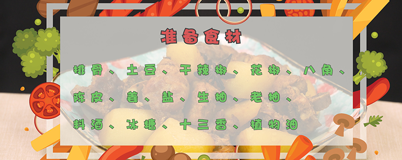准备食材:排骨、土豆、干辣椒、花椒、八角、陈皮、姜、盐、生抽、老抽、料酒、冰糖、十三香、植物油。