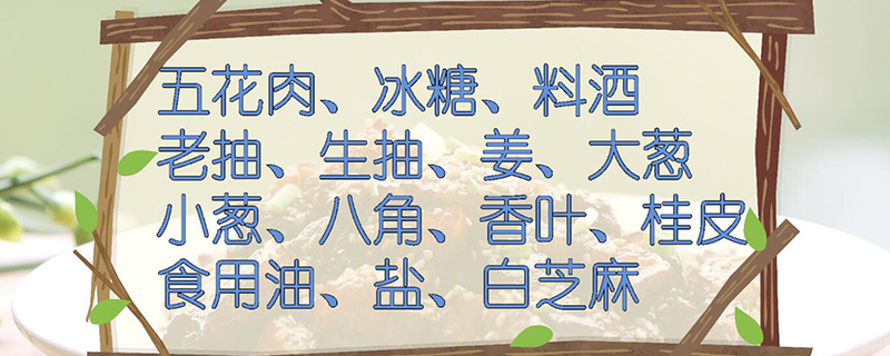 准备食材:五花肉、冰糖、料酒、老抽、生抽、姜、大葱、小葱、八角、香叶、桂皮、食用油、盐、白芝麻。