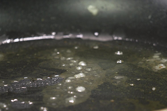 3、起锅烧油,油烧热后放入冰糖,同时调至中小火熬煮成焦红色。
