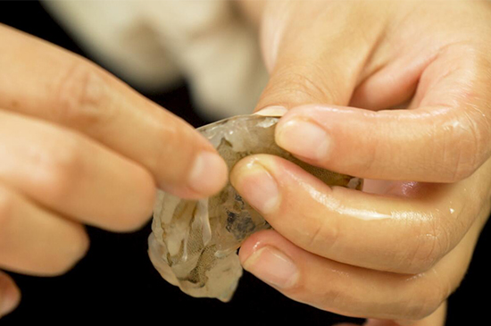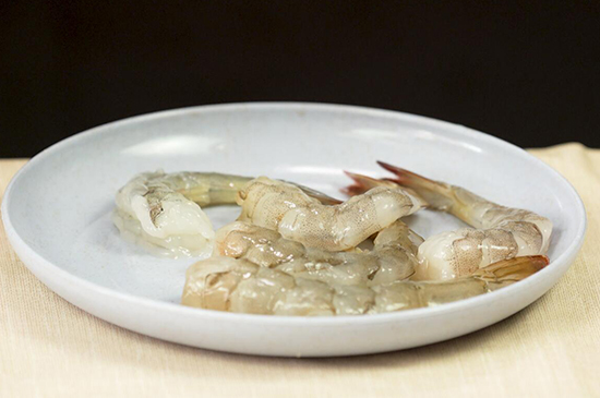 1、去掉虾头和虾肠,保留尾巴最后那一节,鸡蛋打散备用。