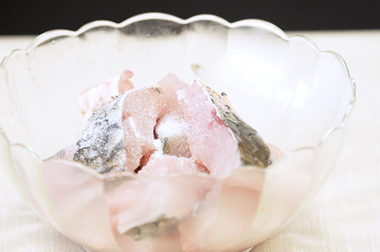 1、鱼洗净后切块,撒上适量盐腌制一段时间。大蒜掰成瓣,葱切成葱花,姜切片,香菜切成末备用。
