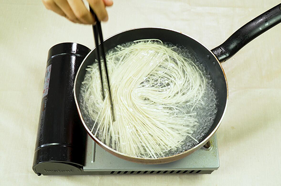 5、之后倒入肉丝和煮好的肉汤,加入适量陈皮和盐,煮沸后盛出。另起锅烧水,把面条放入里面煮熟。