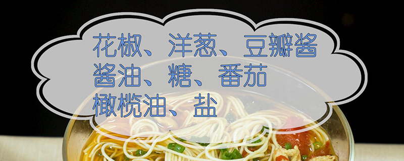 准备食材:瘦肉、面条、料酒、葱、姜、蒜、八角、香叶、陈皮、花椒、洋葱、豆瓣酱、酱油、糖、番茄、橄榄油、盐。