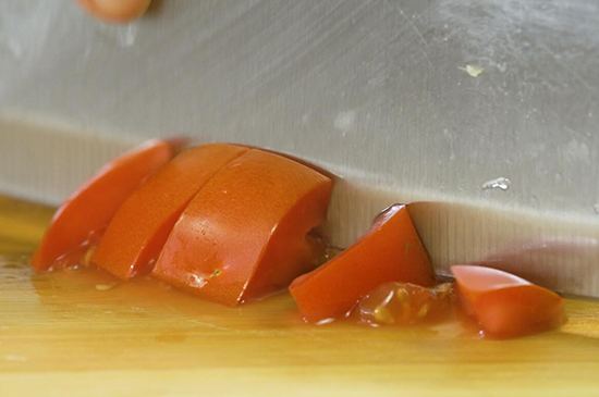 1、肉片洗净切丝,葱白切段,葱花切末,洋葱和生姜切片,大蒜掰成瓣,番茄切成小块备用。
