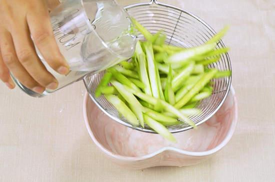 2、肉片放在盐、料酒、黑椒汁、生粉抓匀腌制30分钟,芦笋放入热水内焯烫几分钟,再捞出冲洗干净。