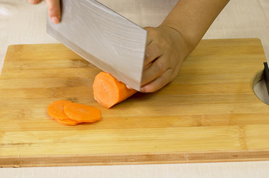 1、鸡腿洗净后表面划刀,放入锅内加入料酒焯水去除腥味和血沫,大葱切段,葱叶切花,生姜和胡萝卜切片备用。