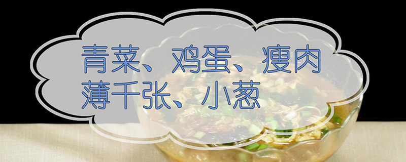 准备食材:青菜、鸡蛋、瘦肉、薄千张、小葱、油、盐、生粉、香油、酱油。