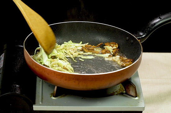 2、起锅烧油,油热后放入肉丝翻炒1分钟,加入酱油翻炒几下后,再放入青菜中火翻炒。