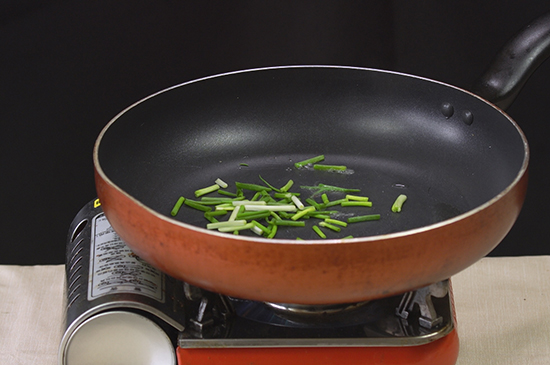 2、起锅烧油,油热后放入切好的葱、姜、蒜和辣椒大火炒出香味。
