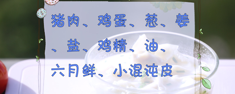 准备食材:猪肉、鸡蛋、葱、姜、盐、鸡精、油、六月鲜、小混沌皮。