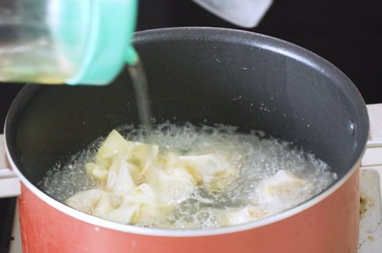 4、最后放入锅中加开水和油煮熟,美味的抄手就做好了。