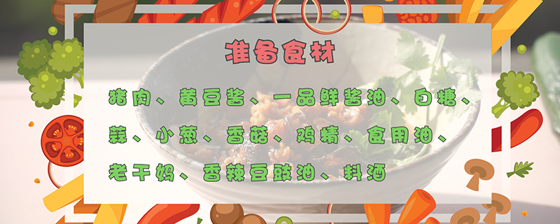 准备食材:猪肉、黄豆酱、一品鲜酱油、白糖、蒜、小葱、香菇、鸡精、食用油、老干妈香辣豆豉油、料酒。