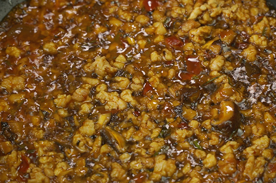 5、煮好后转大火收汁,再添加适量鸡精,鲜香的杂酱就制作好了。