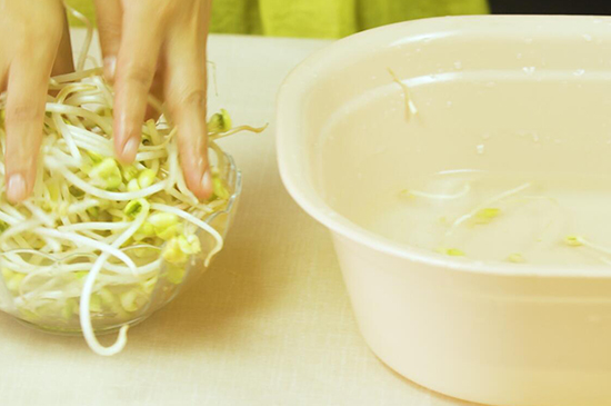 4、加入半碗清水,转小火焖煮5分钟左右,黄豆芽煮熟后,美味的家常炒豆芽就做好了。