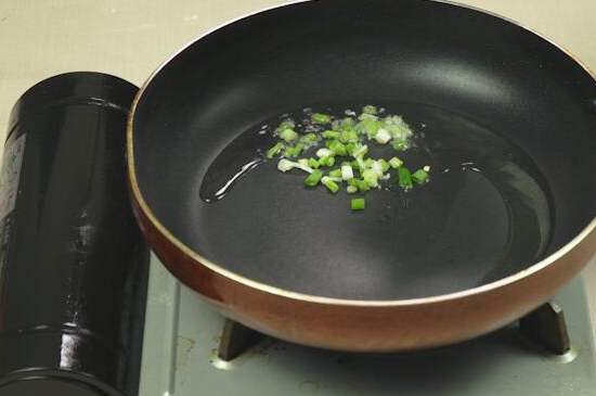 3、起锅烧油,油热后放入切好的葱、蒜和辣椒炒出香味,再把腌好的肉丝放入炒至变色。翻炒时间不宜过长,否则会影响口感。
