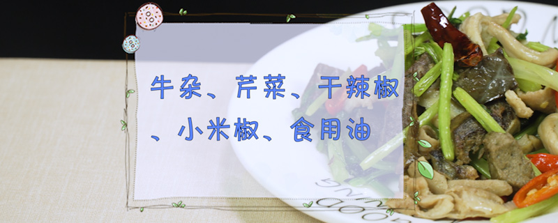 准备食材:牛杂、芹菜、干辣椒、小米椒、食用油。