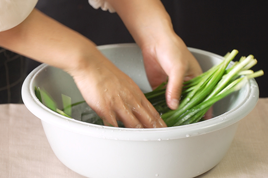 准备食材:韭菜、猪肉、酱油、盐、面粉、生姜、食用油。