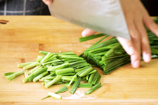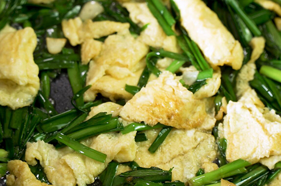 在制作韭菜炒鸡蛋的时候,先将韭菜切成小条状,鸡蛋放在碗里搅拌均匀,将鸡蛋煎成金黄色起锅,再在锅中放入蒜头后爆香,将韭菜倒入其中后,放入备好的鸡蛋,再放入适量的生抽和盐入味就行了。