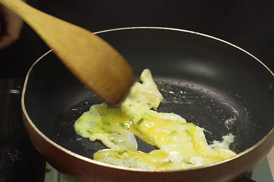 2、在油锅里放入适量的油,将鸡蛋煎炸成金黄色。