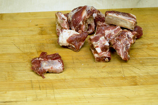 2、将切好的山药和排骨放入沸水中煮一下,加料酒和生姜去腥。