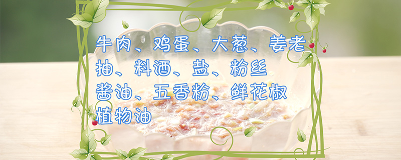 1、牛肉剁成肉馅,鸡蛋打散,大葱去皮切葱末,姜切末,粉丝洗净温水泡软切碎备用。
