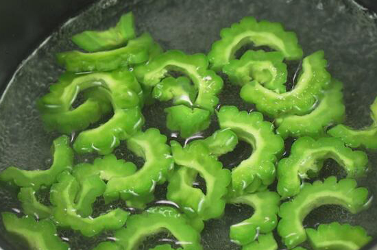 2、锅中倒入清水煮沸,加入苦瓜焯水三十秒后捞起
