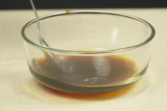 4、炸好后取出切成片状,再加入生抽、蚝油、盐、鸡精和适量的清水,混合搅拌均匀。