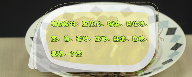 准备食材:五花肉、梅菜、色拉油、葱、姜、老抽、生抽、蚝油、白糖、黄酒、小葱。