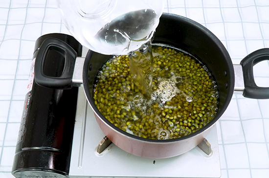 2、锅内倒入清水和绿豆,水量建议没过绿豆2~3公分左右。