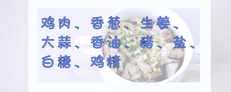 准备食材:鸡肉、香葱、生姜、大蒜、香油、醋、盐、白糖、鸡精。