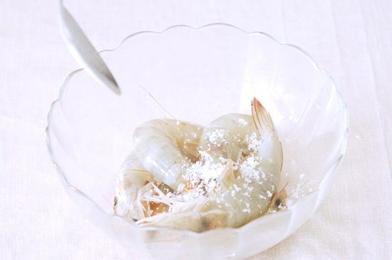 准备食材:新鲜河虾、盐、花椒、姜、葱、料酒、味精。