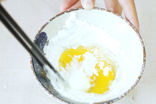 1、先将五花肉切成片状,再将鸡蛋和淀粉调成糊,将小葱切段、姜切丝。