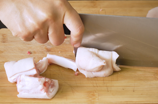 1、小葱打葱结,生姜切片,大蒜切片,猪蹄切成块,放入水中浸泡一段时间。