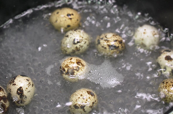 1、先将鹌鹑蛋洗干净后,放在烧开水的锅中,待烧开后的10分钟左右就可以起锅。