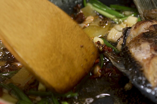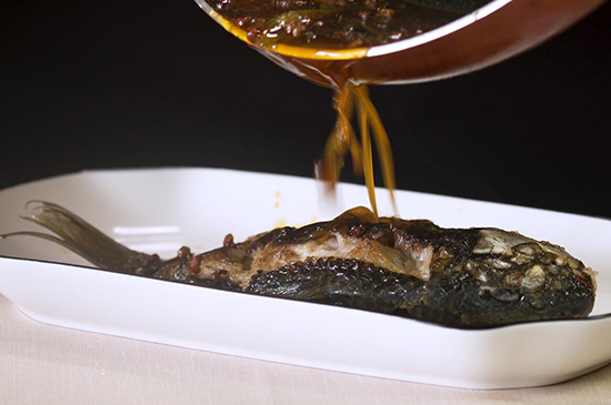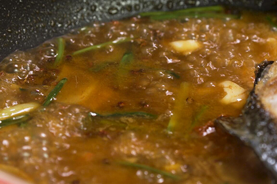 6、最后把罗非鱼盛出,锅内的汤汁撒上盐收汁后淋在罗非鱼上,色香味美的红烧罗非鱼就做好了。
